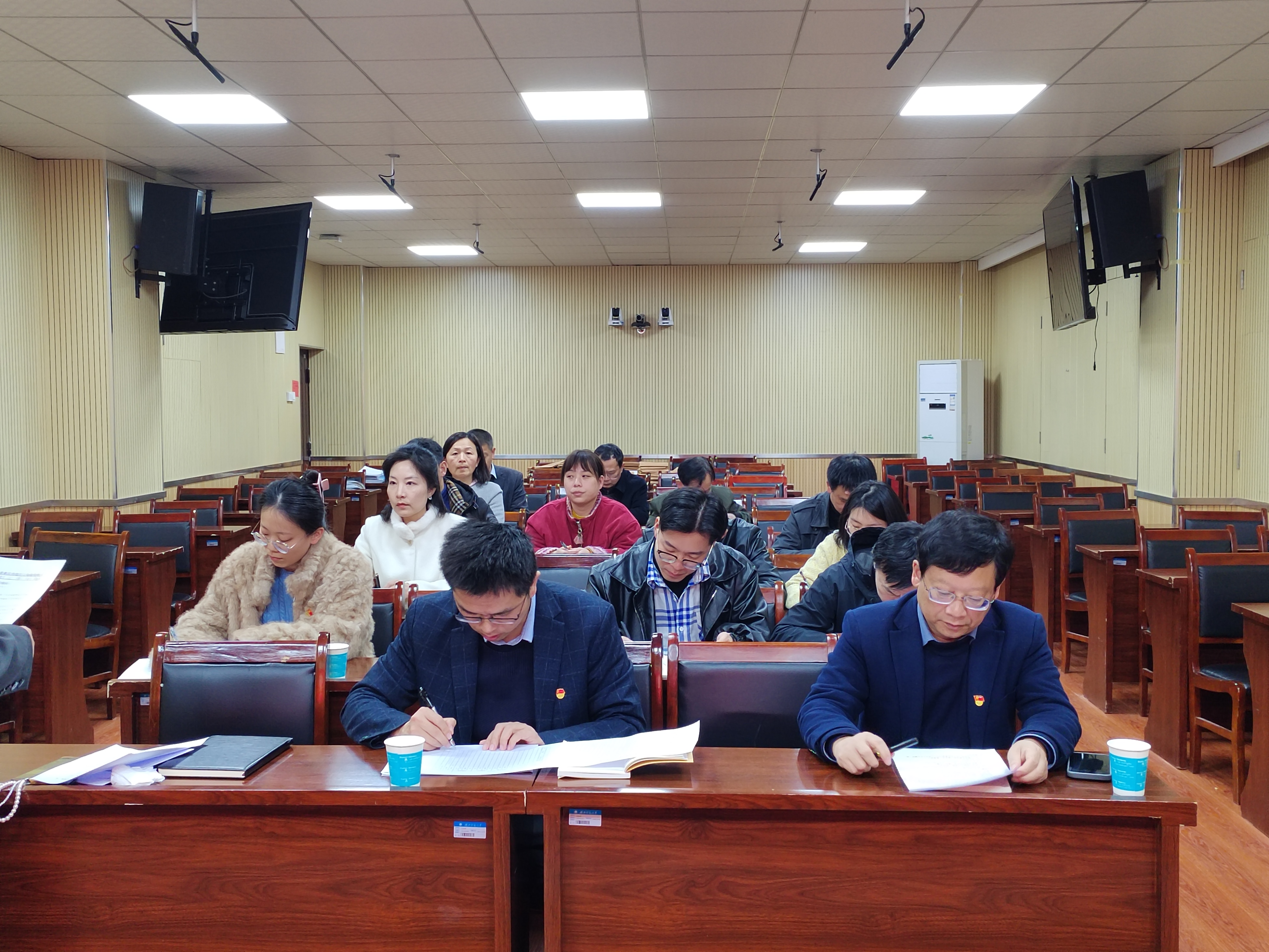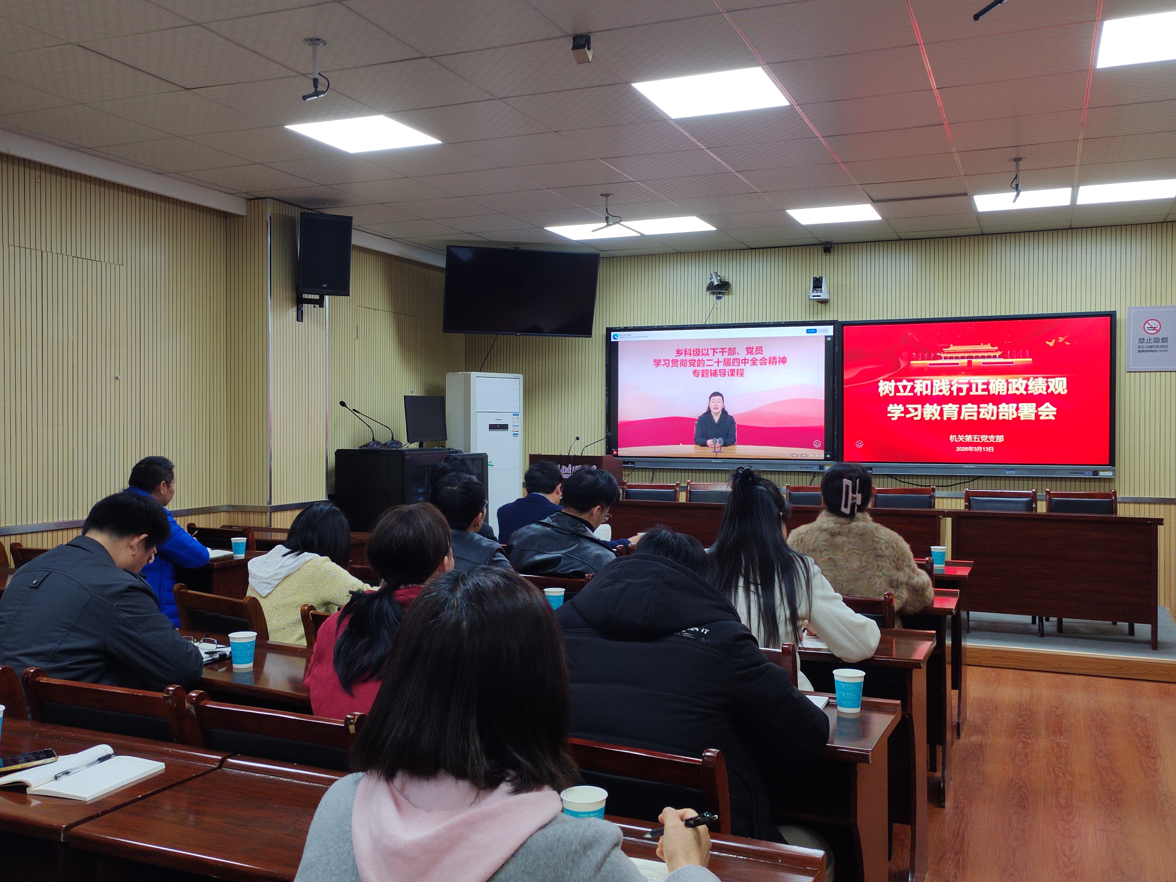 会上,全体党员干部集中观看党的二十届四中全会精神专题培训课程。常璐、吴萃同志结合自身岗位,就如何以正确政绩观为引领,立足本职提升履职效能,为学校教育事业发展筑牢坚实保障作交流研讨。